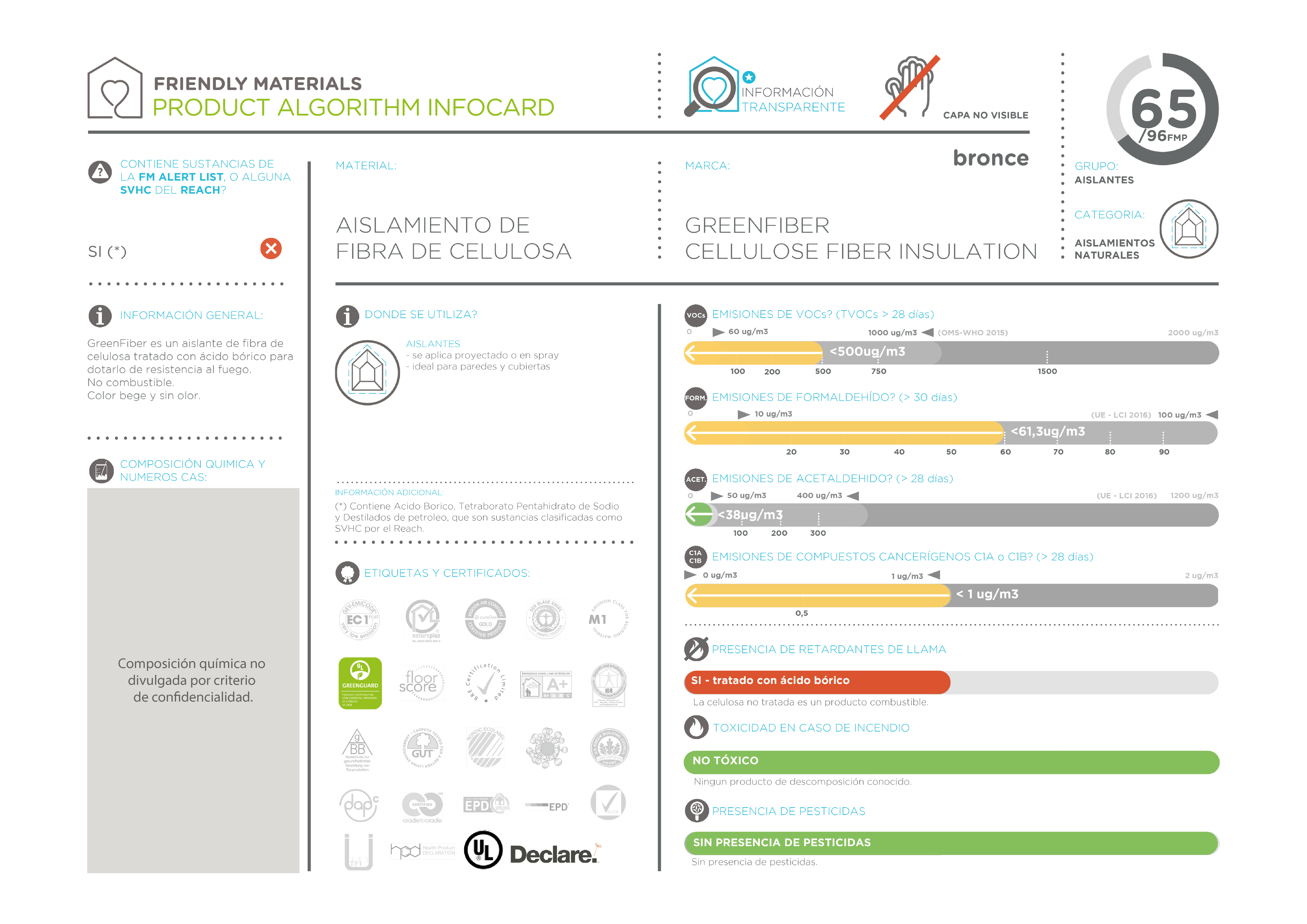 GreenFiber es un aislante de fibra de celulosa tratado con ácido bórico para dotarlo de resistencia al fuego.