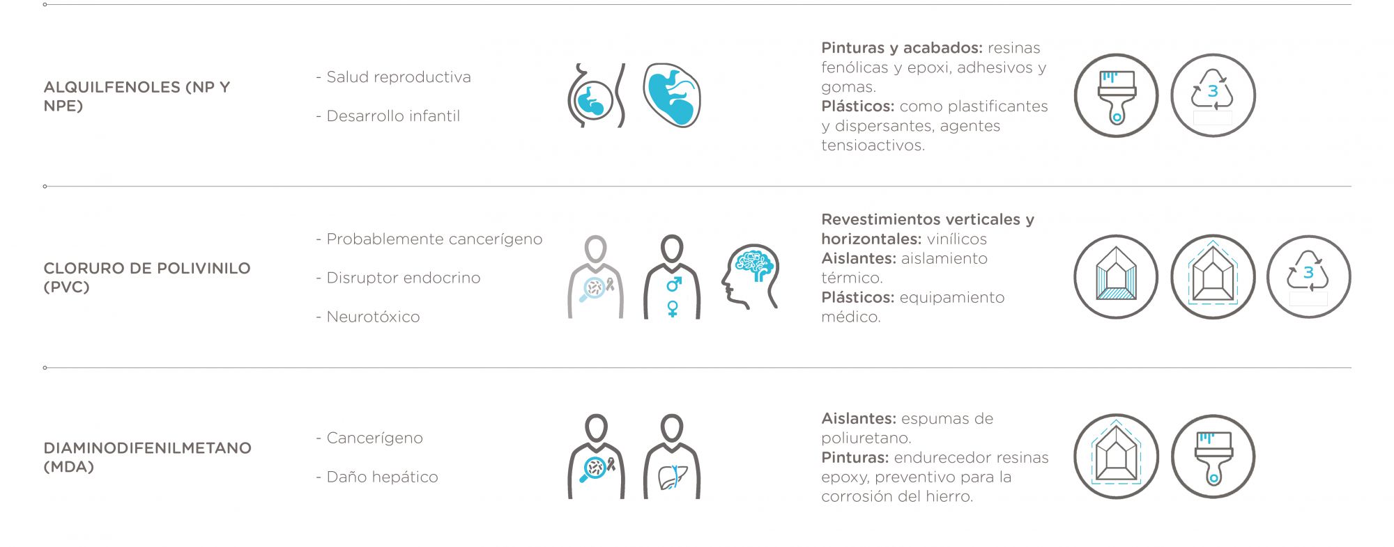 Las sustancias identificadas en la Alert List son el resultado de un largo proceso de estudio de 6 red lists de referencia reconocidas a nivel internacional: REACH (anexos XIV y XVII), SIN List, EPA Action Plan, Living Building Challenge y Transparency by Perkins+Will.